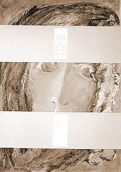 Текст – то, что мы привыкли воспринимать, как чистую информацию, передаваемую линейно и последовательно, начинает жить по новым законам, играть по правилам живописной композиции: стихотворение разрезано пополам, причём «вдоль», каждая строфа разбита на две части, в свою очередь разделённые изображением. Чтобы прочесть такие стихи, необходимо всё время переносить взгляд то вверх, то вниз – так возникает странный эффект буквально РВАНОГО ритма стиха.