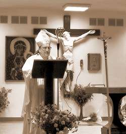 Тем более странной была картина долгожданного открытия и первого богослужения в нижнем, подвальном храме нового псковского костёла. Приехал епископ Тадеуш Кондрусевич – глава всех католиков Европейской России. Для католических верующих города настал праздник. Тут бы и проявить великодушие: Церковь-сестра празднует новоселье. Храм в любом случае лучше, чем пустырь: разве не так?