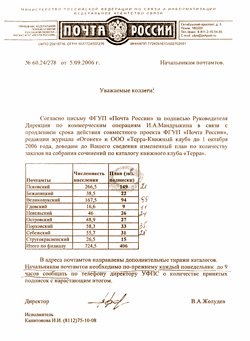 Сейчас, в 2006 году, каталог подписных изданий «Терра» позиционируется на почте как «госзаказ», как исконная услуга почты. Это - официальная вывеска. На самом деле происходит совсем другое.