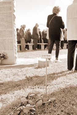 Одновременно с поисками погибших шел поиск их потомков. Приехавшие в Россию 8 сентября родственники находили на строгих вертикальных камнях в тысячных алфавитных списках имена членов своих семей. 11 тысяч имен уже нанесены на гранитные стелы. У большинства похороненных даты смерти – 1944 год. Немцы привезли с собой тома большой книги с именами и схемами всех произведенных на кладбище захоронений. Она так и называется: «Книга имен». Останки каждого солдата похоронены в отдельном небольшом гробу. Каждый родственник, открыв эту книгу на нужной странице, мог найти точное место захоронения своего близкого. Они разошлись по всему кладбищу, находили это место и вкапывали в землю небольшие деревянные памятные кресты и даже просто таблички с именем и датами жизни. Возлагали цветы. Ставили свечи. И стояли в молчании.