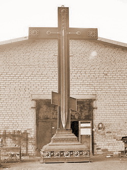 | Железный крест, уготованный для Себежского городища властями Себежского района, «украсили» многометровым мечом. |