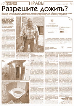 Статья Александра Богача "Разрешите дожить?" вышла в свет в "Псковской губернии" 14 сентября 2011 г.